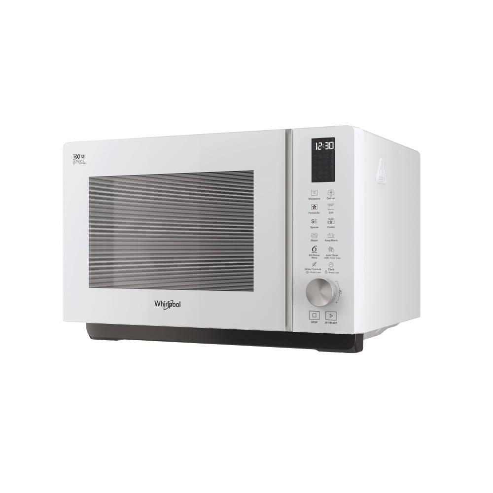 Denne fritstående Whirlpool-mikrobølgeovn har: Kombinationsteknologi, der giver samme fleksibilitet med tilberedningen som traditionelle ovne. Eksklusiv 6th SENSE-teknologi, som automatisk indstiller tid, temperatur og energiforbrug under madlavningen. Dampfunktion, så du kan tilberede sunde, lette og velsmagende måltider med et tryk på en knap.